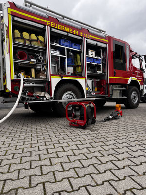 In der Zwischenzeit konnten die anderen Gruppen das große Feuerwehrauto erkunden.