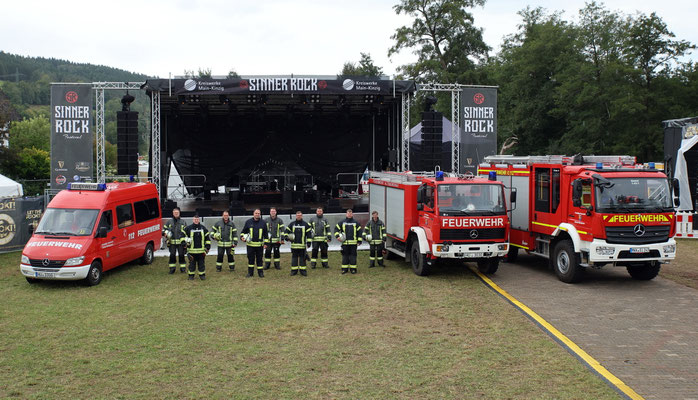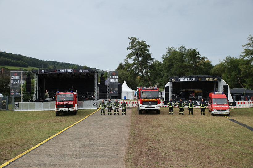 Parallel dazu stellte die Einsatzabteilung den geforderten Brandsicherheitsdienst. Auf Anordnung der zuständigen Behörde der Gemeinde Sinntal waren am Freitag und Samstag jeweils drei Einsatzkräfte mit einem Feuerwehrfahrzeug auf dem Festivalgelände präsent. Aufgeteilt in zwei Schichten pro Tag wurde so der Brandschutz zuverlässig gewährleistet. Eingreifen mussten die Kräfte erfreulicherweise nicht.
