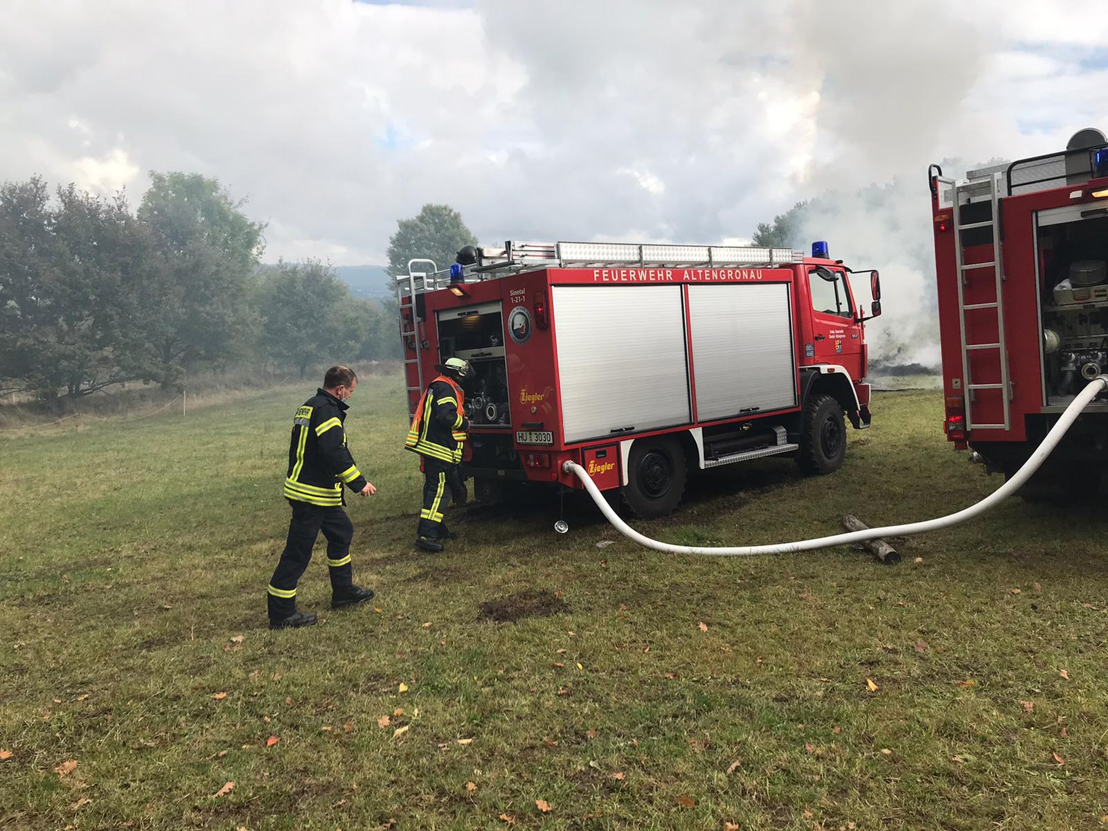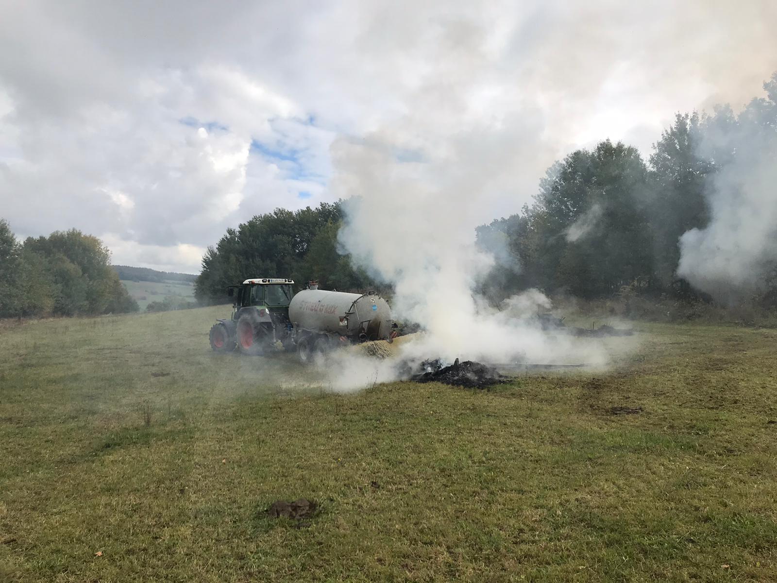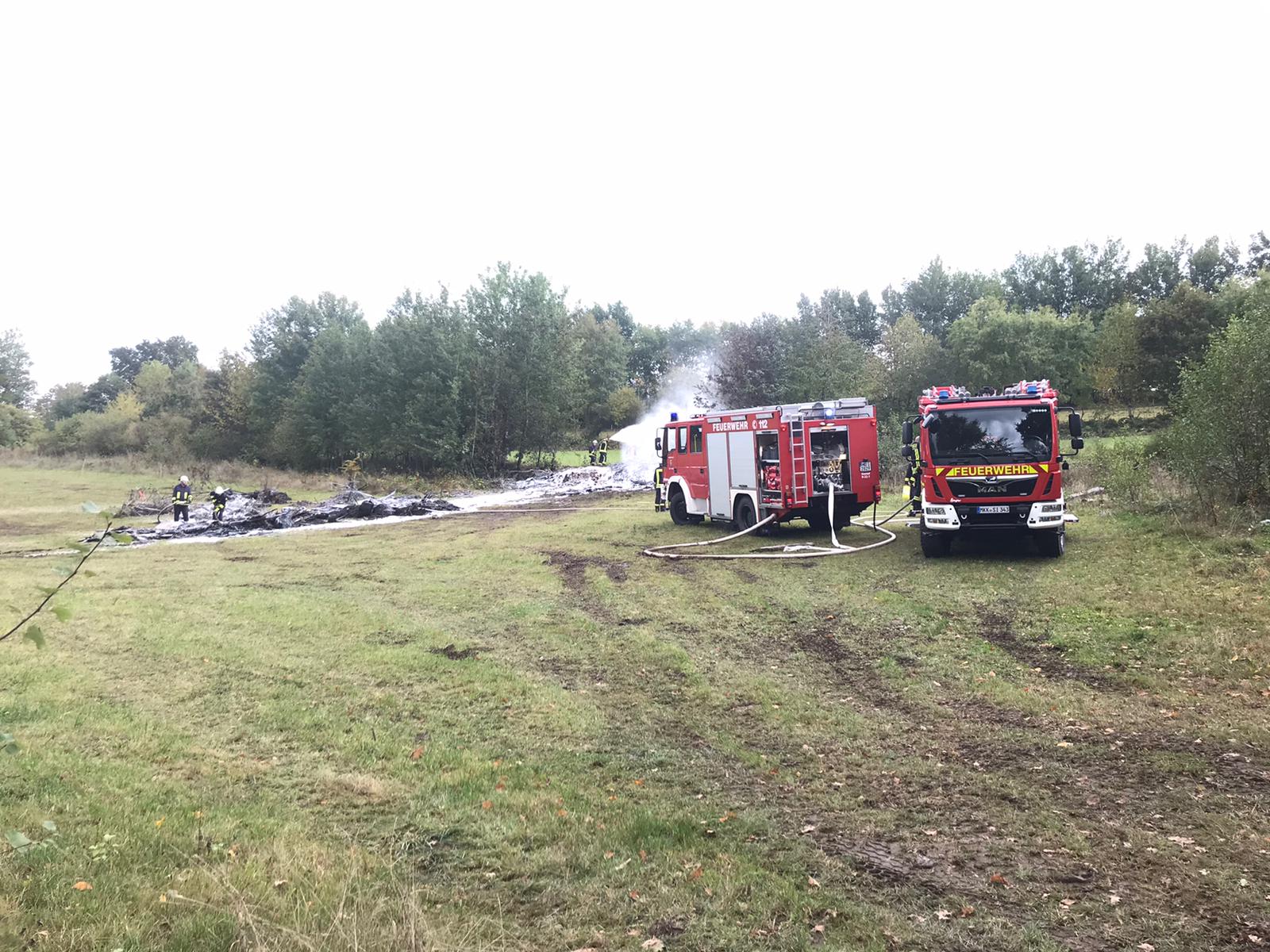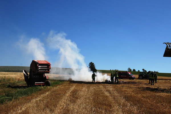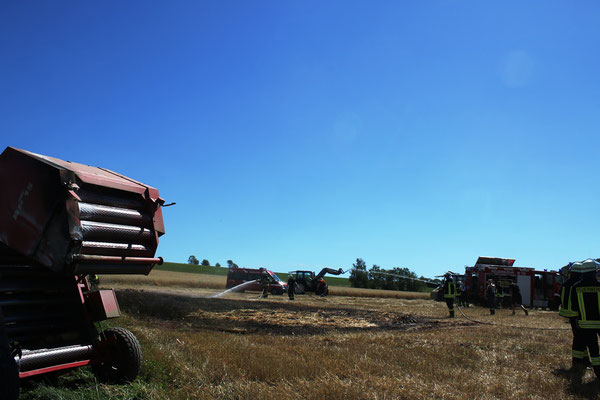 Die Feuerwehren Sterbfritz und Weiperz wurden zu einer brennenden Ballenpresse auf ein Feld zwischen Sterbfritz und Weiperz alarmiert. Die Ballenpresse wurde bereits vor dem EIntreffen der Feuerwehr von einem der anwesenden Landwirte mit einem Feuerlöscher gelöscht. Das Feld brannte auf einer Fläche von ca. 50m². Die Einsatzkräfte löschten das Feld und einen Haufen Stroh.
