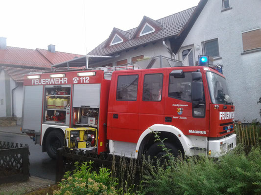 Aufgrund starker Regenfälle lief Wasser in einen Keller in Sterbfritz. Die Feuerwehr Sterbfritz pumpte den Keller aus und entfernte damit das Wasser aus dem Gebäude.